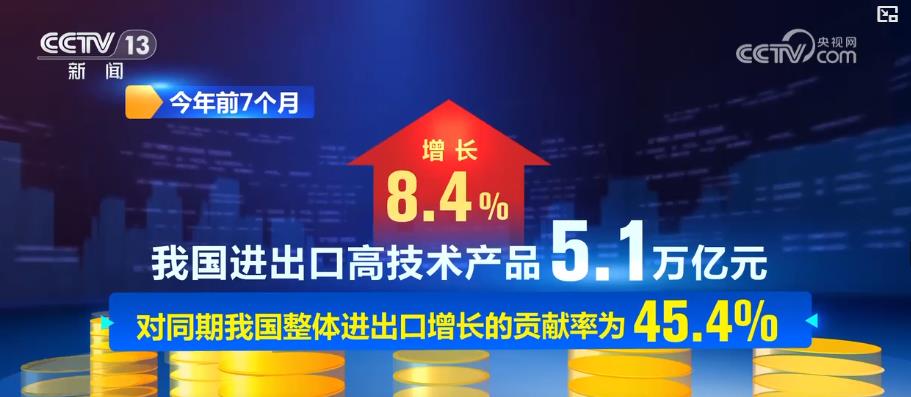 海关数据显示,本年前7个月,我国进出口高手艺产物5。1万亿元,增加8。4%,对同期我国全体进出口增加的贡献率为45。4%。